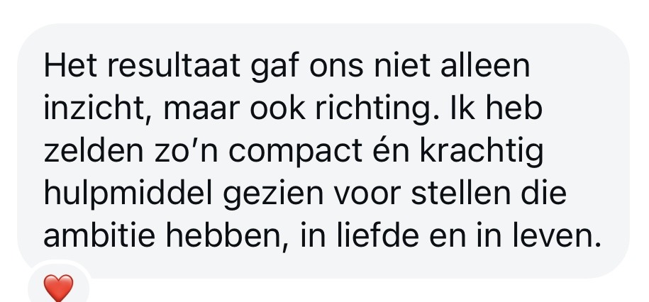 Geen oppervlakkige scan, maar een compacte, krachtige tool die inzicht geeft in dé thema’s die relaties maken of breken.
